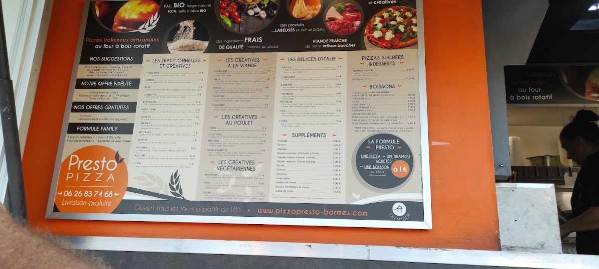 Welcome to Presto Pizza, a delightful pizza takeaway nestled in the charming town of Bormes-les-Mimosas, France. Located at 78 Av. lou Mistraou, this gem is famed for its delicious Italian-style pizzas, featuring a light and fluffy base that's paired with an array of fresh toppings. Customers consistently rave about the quick service and the friendly, welcoming staff—like Baya, who’s recognized for her exceptional English skills.